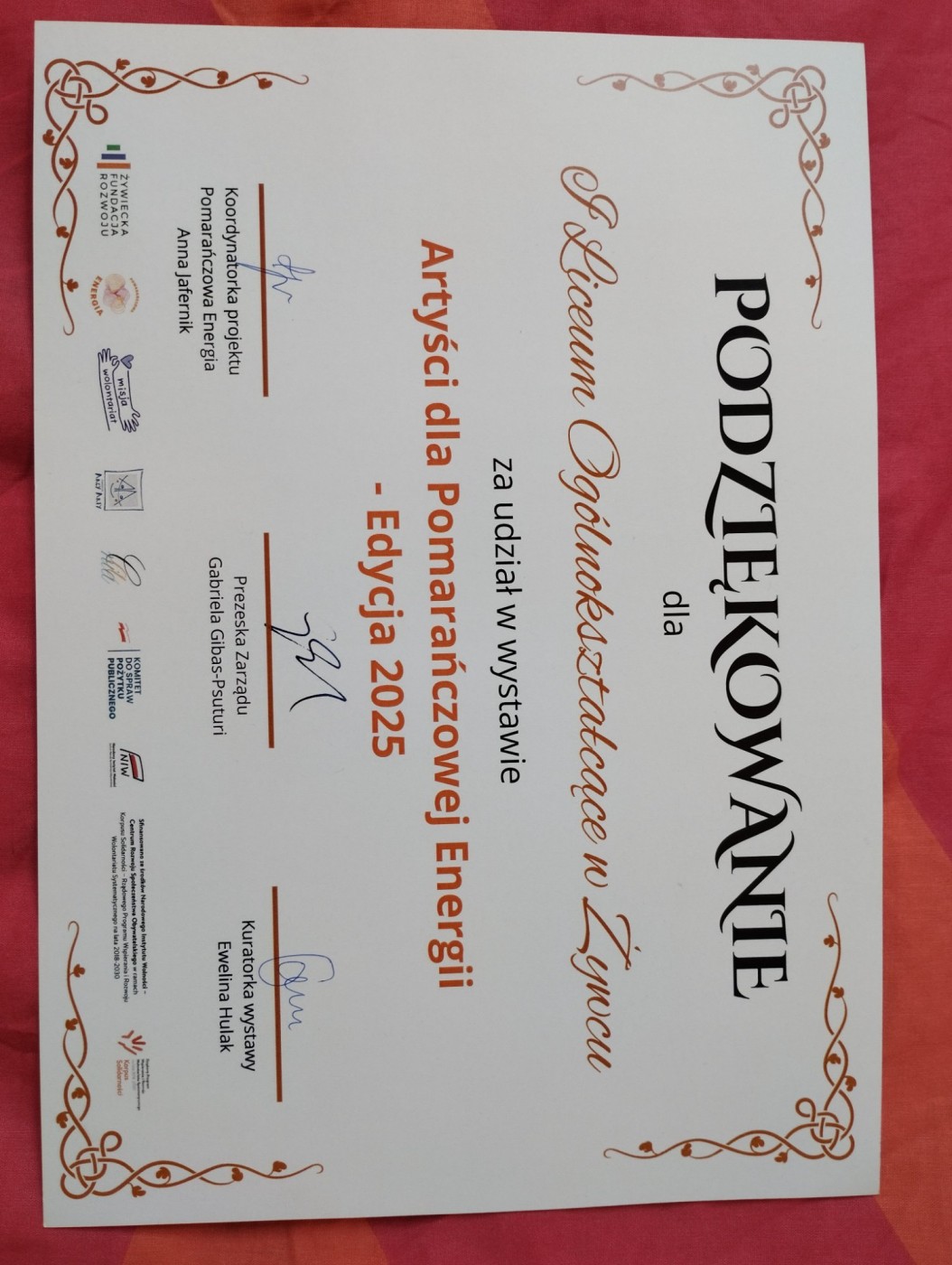 W piątek, 19 grudnia 2025 roku odbył się finisaż wystawy "Artyści dla Pomarańczowej Energii" w Żywieckiej Fundacji Rozwoju, realizowany w ramach projektu Pomarańczowa Energia - Stop Osamotnieniu Dzieci.