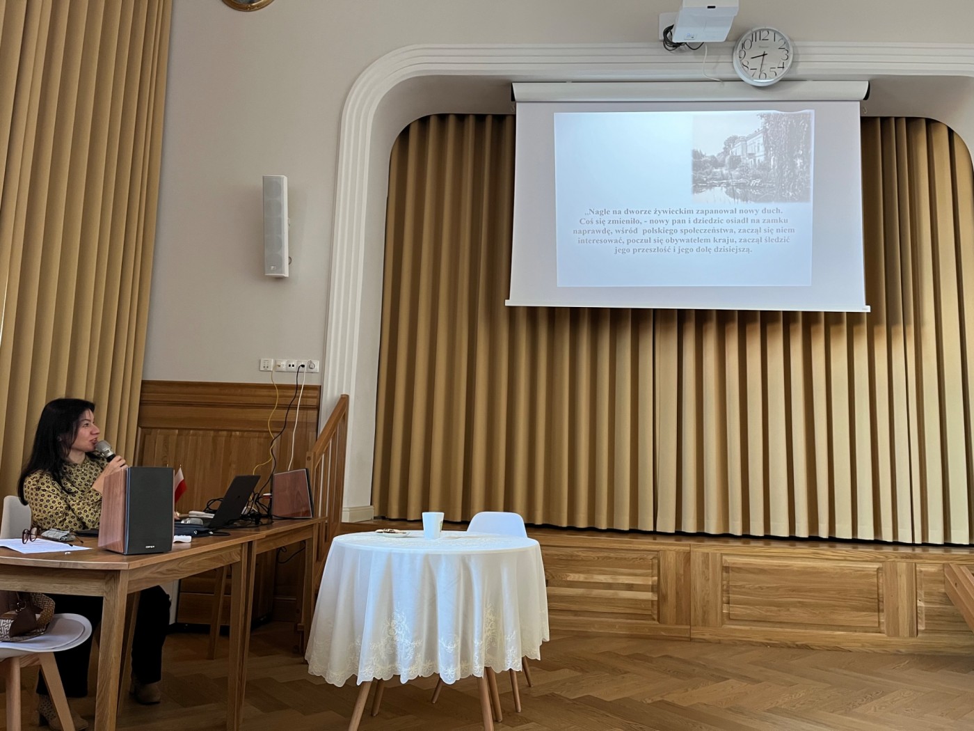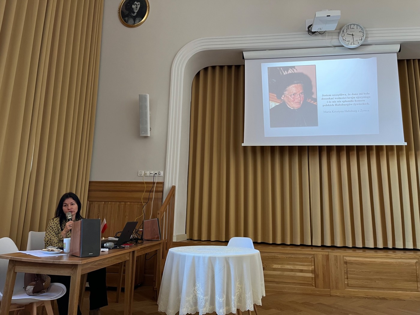 Garnitur wspaniałych klejnotów został skradziony w Luwrze. O tym zapewne większość z nas słyszała zapewne, ale Państwo wiecie, że podczas tego włamania skradziono naszyjnik i kolczyki, które do lat 50-tych były własnością arcyksiężnej Alicji Habsburg z Żywca? – pytanie zadała historyk sztuki p. Dorota Firlej. Dzieje rodowych klejnotów to tylko jeden z intrygujących wątków związanych z rodziną żywieckich Habsburgów. Wykładowczyni przypomniała, że w pierwszej połowie XIX wieku arcyksiążę Karol Ludwik Habsburg zakupił w Żywcu rozległe dobra ziemskie. Jego potomek założył tam dobrze prosperujący browar. Rozwijanie dóbr kontynuował spadkobierca majątku Karol Stefan Habsburg, który w czasie I wojny światowej zabiegał o niepodległość Polski. Rodzina arcyksięcia, który w sierpniu 1921 roku otrzymał polskie obywatelstwo, nie miała polskich korzeni. Jednak została zbudowana wystarczająca więź, by na zawsze Habsburgowie stali się Polakami. O skomplikowanej, wielowątkowej i niezwykle wzruszającej historii rodziny żywieckich Habsburgów opowiadała kustosz Muzeum Miejskiego w Żywcu, pani Dorota Firlej.