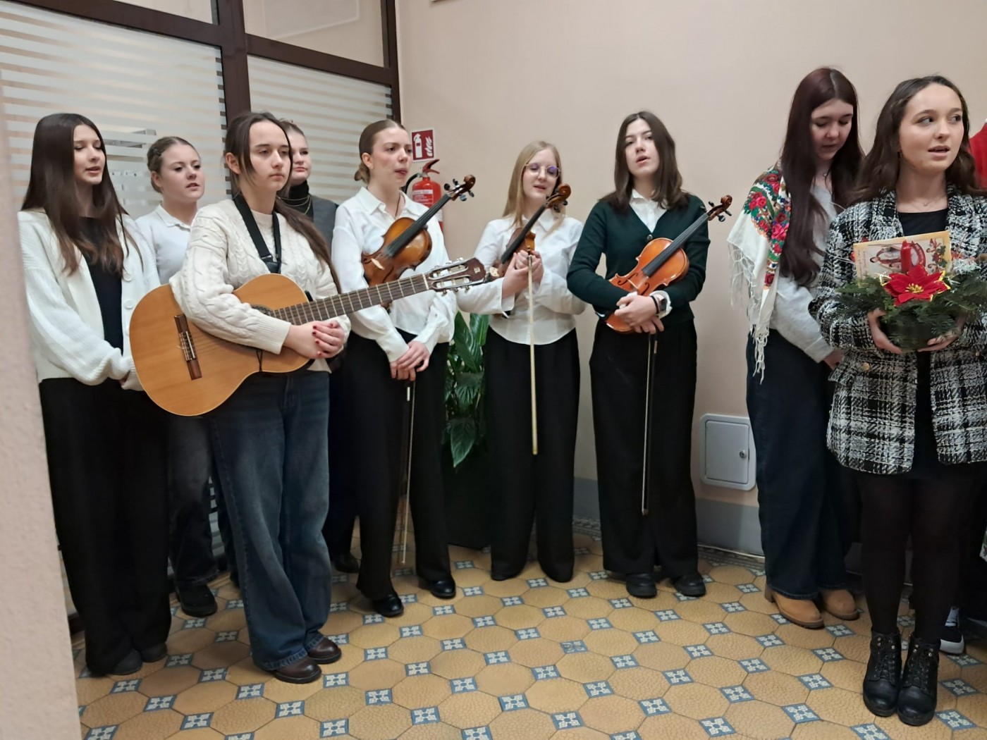W świątecznym czasie młodzież ze Szkolnego Koła Wolontariatu wyruszyła z kolędą i serdecznymi życzeniami do lokalnych instytucji. W środę odwiedziliśmy Starostwo Powiatowe w Żywcu oraz Centrum Rehabilitacyjno-Opiekuńcze w Czernichowie, natomiast w czwartek Dom Pomocy Społecznej w Żywcu.