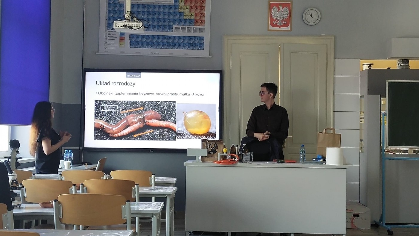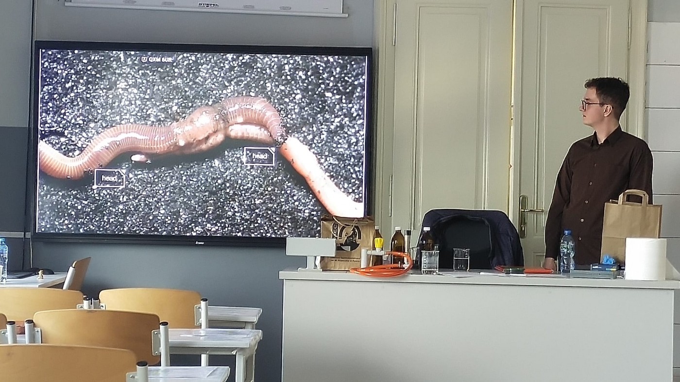 dr hab. Wacław Tworzydło, prof. UJ, mgr Magda Sochaczewska, Stanisław Miodoński Uniwersytet Jagielloński w Krakowie, Zakład Biologii Rozwoju i Morfologii Bezkręgowców, Wydział Biologii UJ, Instytut Zoologii i Badań Biomedycznych,Operacja dżdżownica-anatomia mistrza gleby. Determinacja komórek płciowych u owadów.