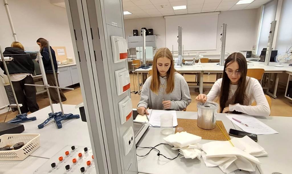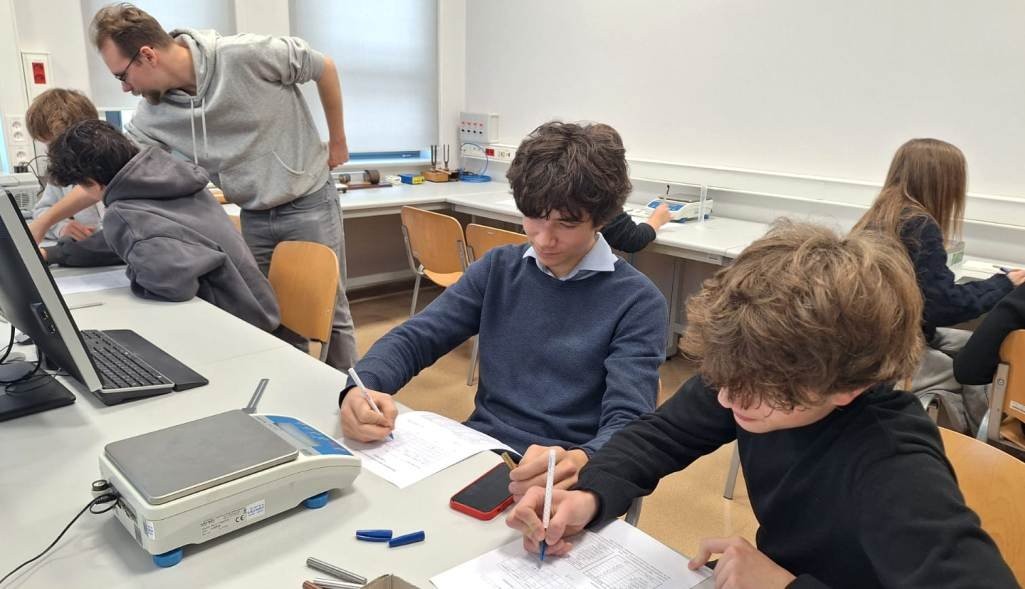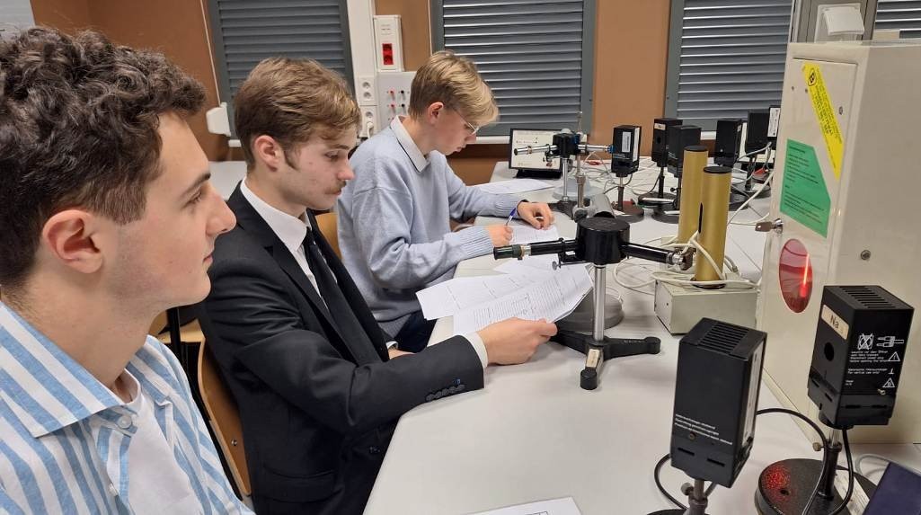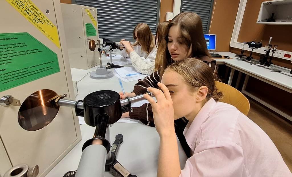 21 listopada 2025r. uczniowie klasy 2b i 4b (klasy z rozszerzeniem język angielski, matematyka, fizyka i geografia) mieli możliwość uczestnictwa w zajęciach laboratoryjnych na Wydziale Fizyki, Astronomii i Informatyki Stosowanej Uniwersytetu Jagiellońskiego. Adresowane do uczniów ćwiczenia prowadzone były w języku angielskim i bazowały na prostych eksperymentach z zakresu mechaniki, termodynamiki, elektryczności i optyki. Młodzież wykonywała zadania samodzielnie pod kierunkiem doktorantów Instytutu.
